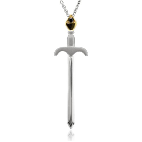 See more technical detailsBuy Men's 14k Gold and Silver Sword Black Diamond Pendant Necklace - 0.05 carat Now