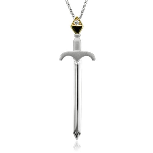 See more technical detailsBuy Men's 14k Gold and Silver Sword White Diamond Pendant Necklace - 0.05 carat Now