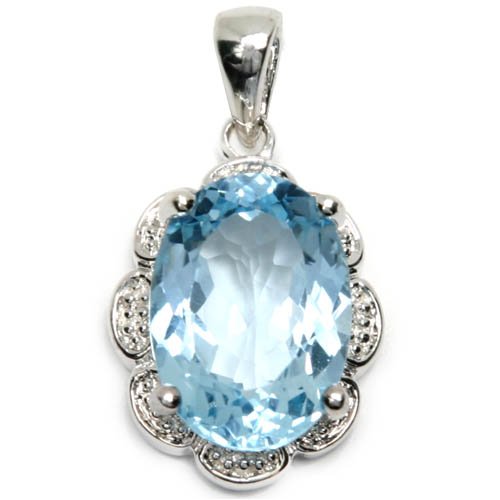 Buy Stunning 6.50 Carat Blue Topaz Diamond accent Sterling Silver Pendant Now